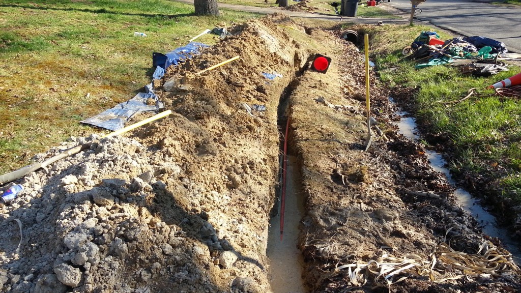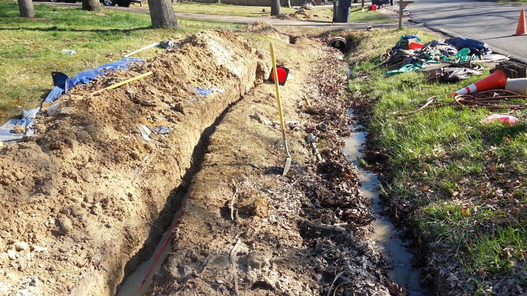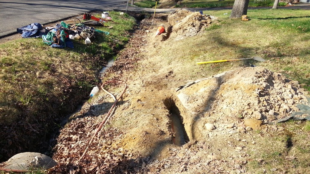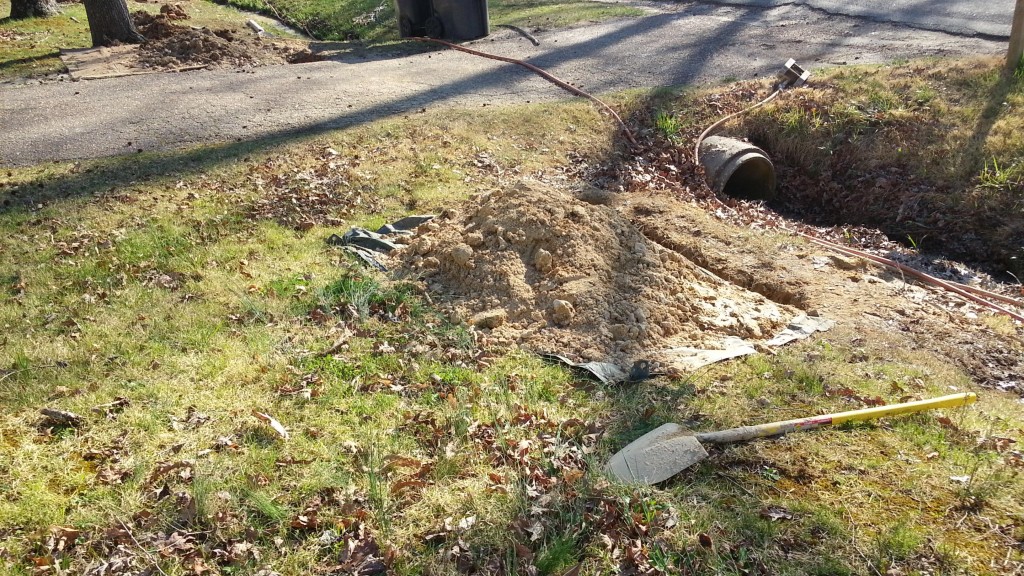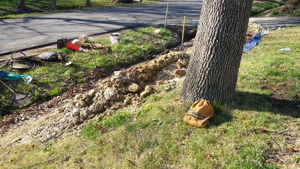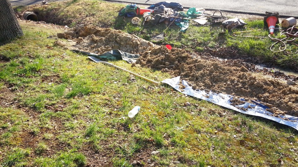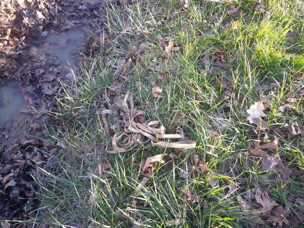 - Long trench, not sure why it is filled with water, they left that rope at the bottom of the photo and the water bottle by the tree. The redbull can is buried int he hole somewhere.
