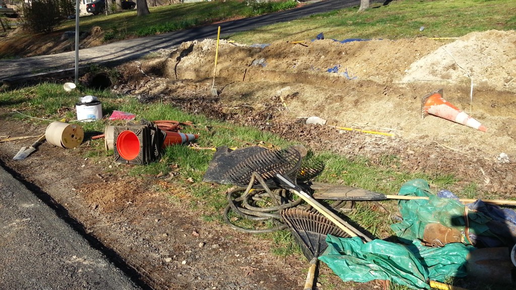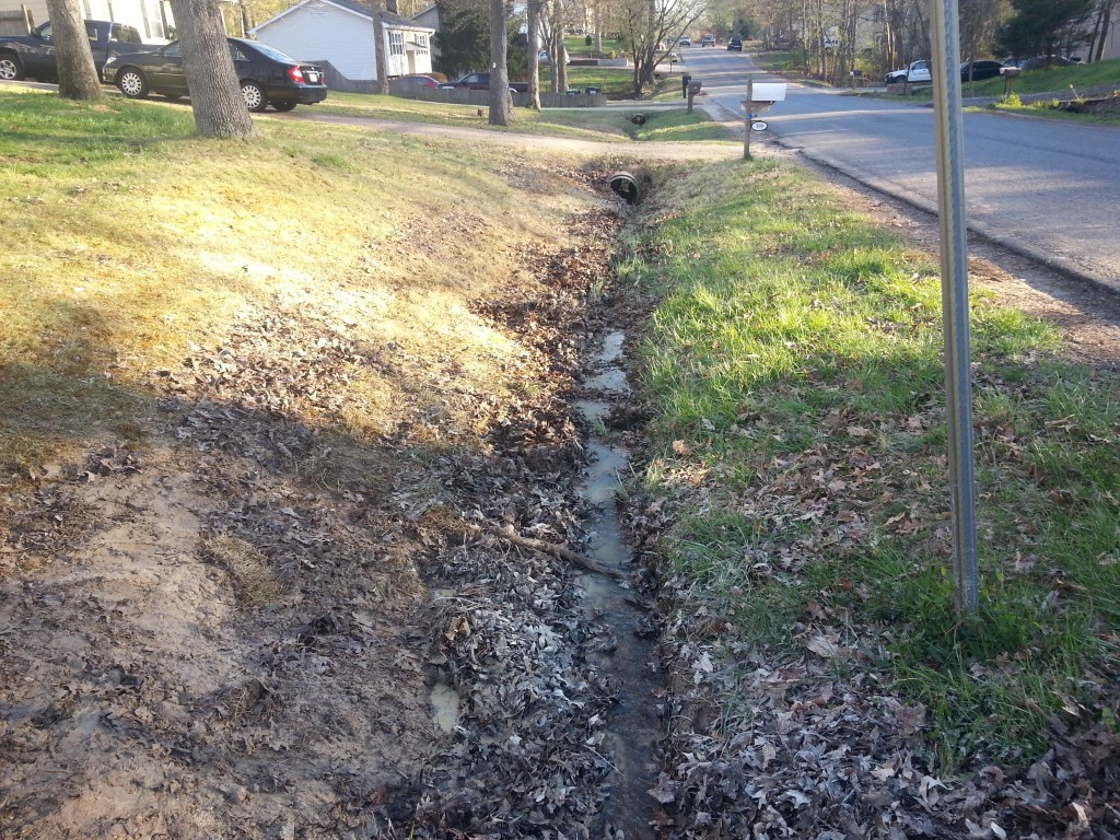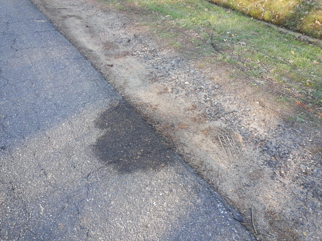 - Closer view of the pile next to the street. They racked all the leaves into the ditch (which they left).