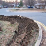So what happens when a big rig tries to do a u-turn around a traffic circle? They end up taking half the circle with them. One of the rocks was found by the speed bumps.